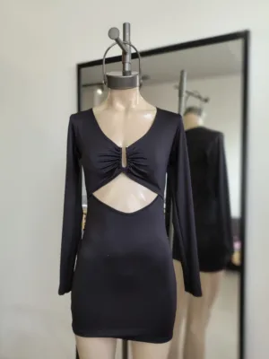 VESTIDO MICROFIBRA MANGA PUÑO ESPALDA ABIERTA