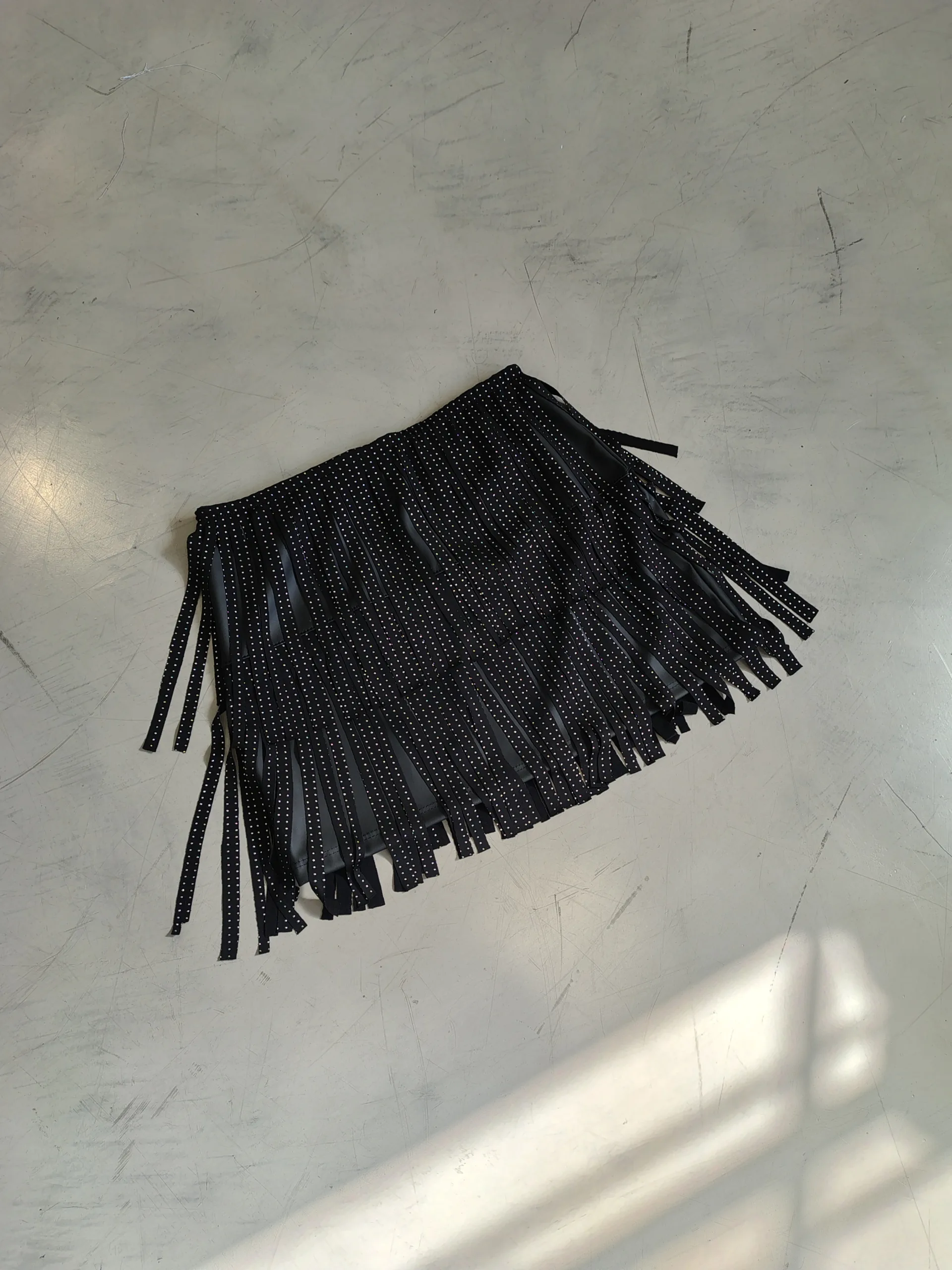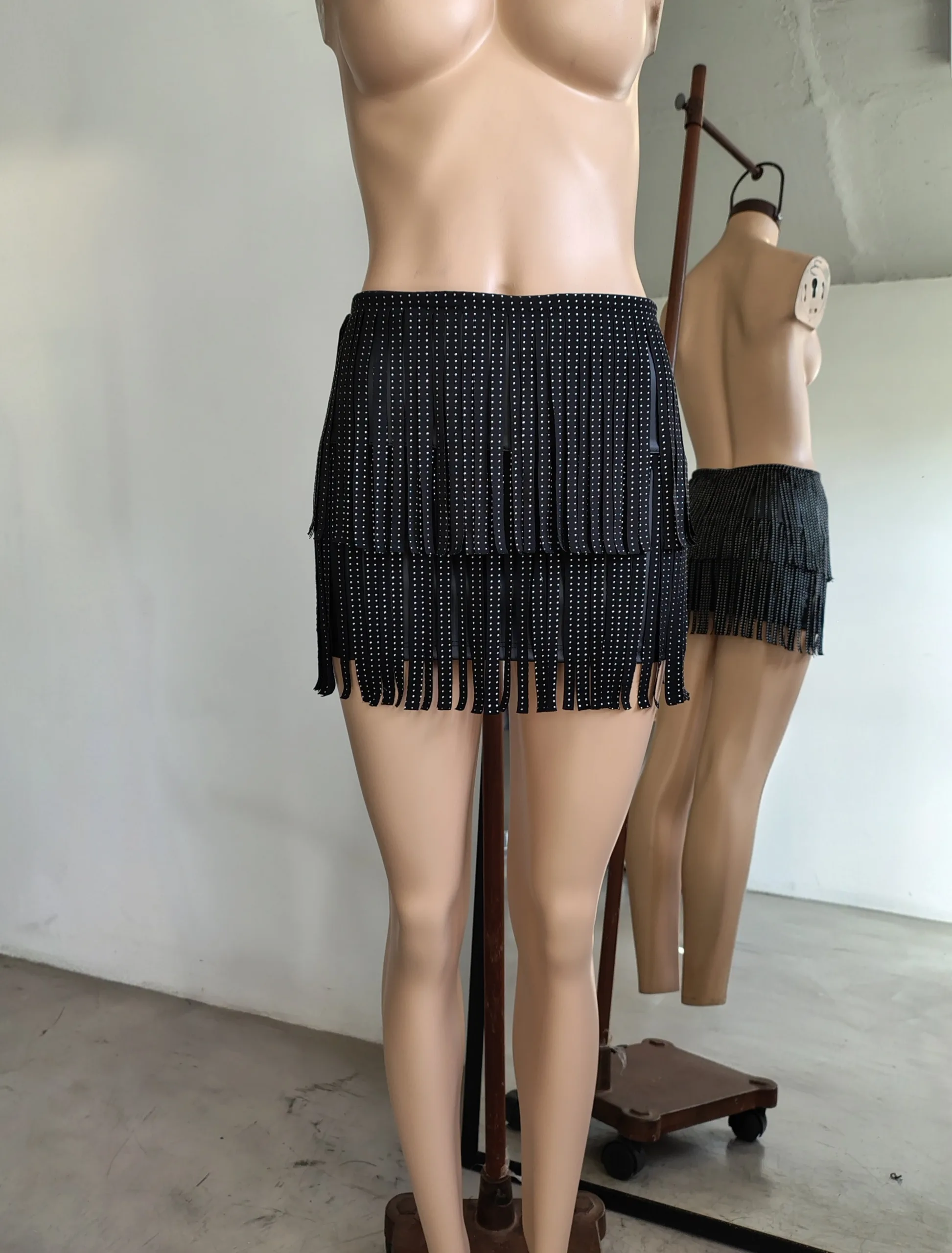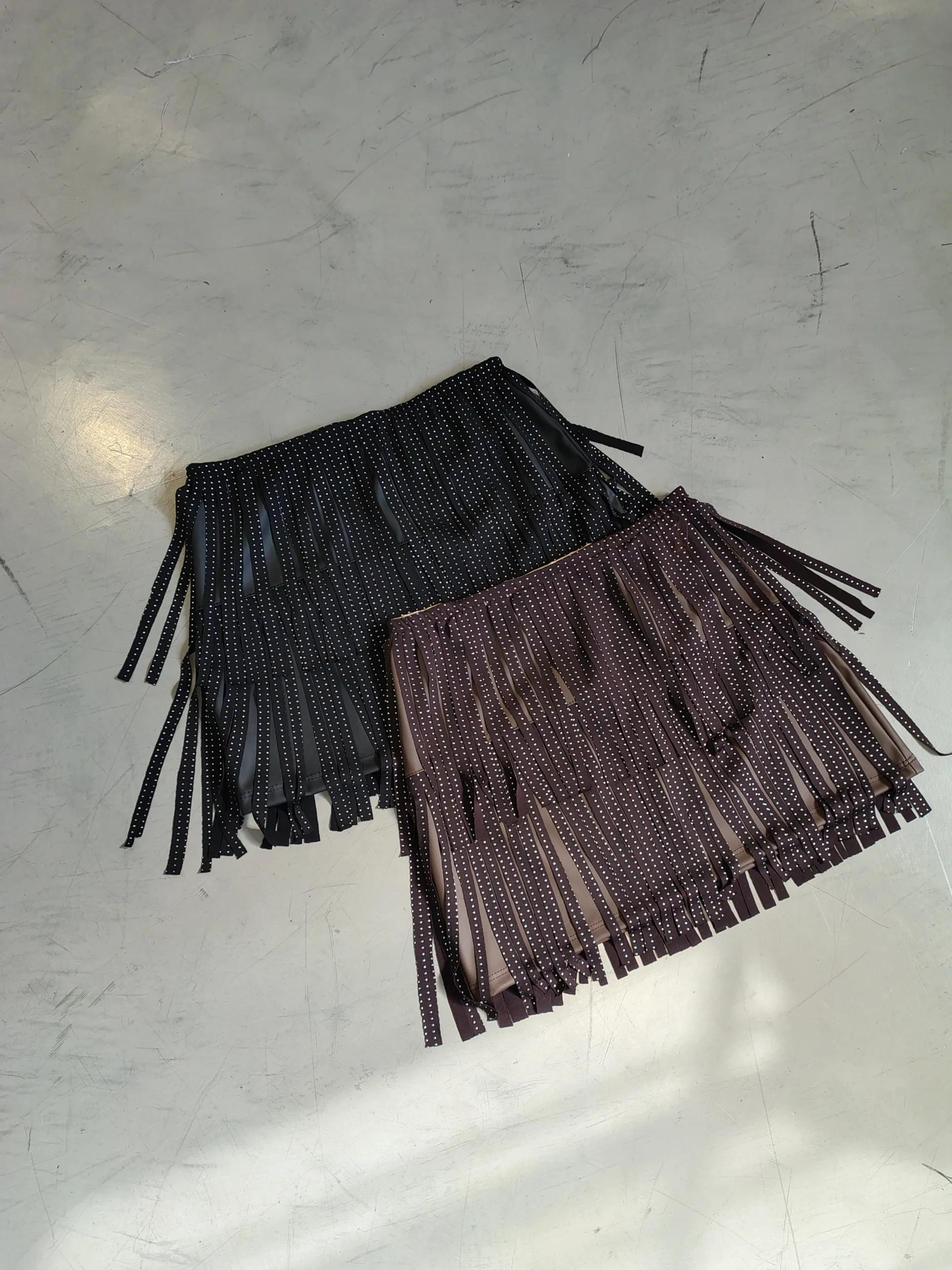 POLLERA CUERINA STRASS FLECO