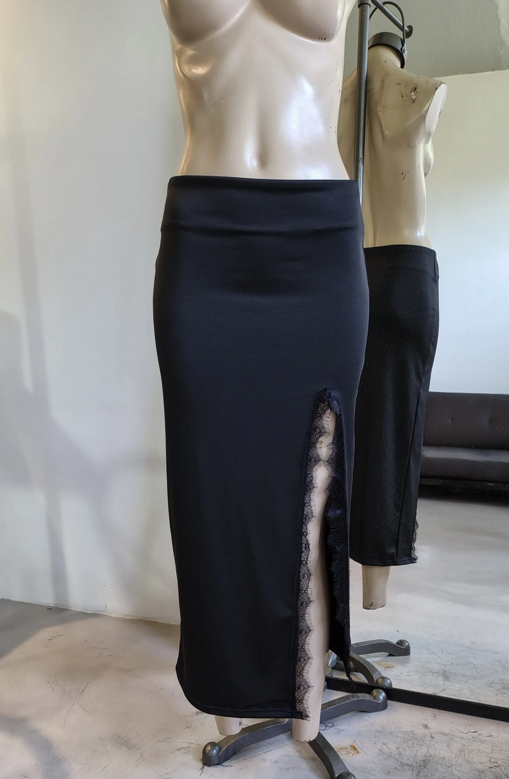 POLLERA MICROFIBRA LARGO PUNTILLA A TONO