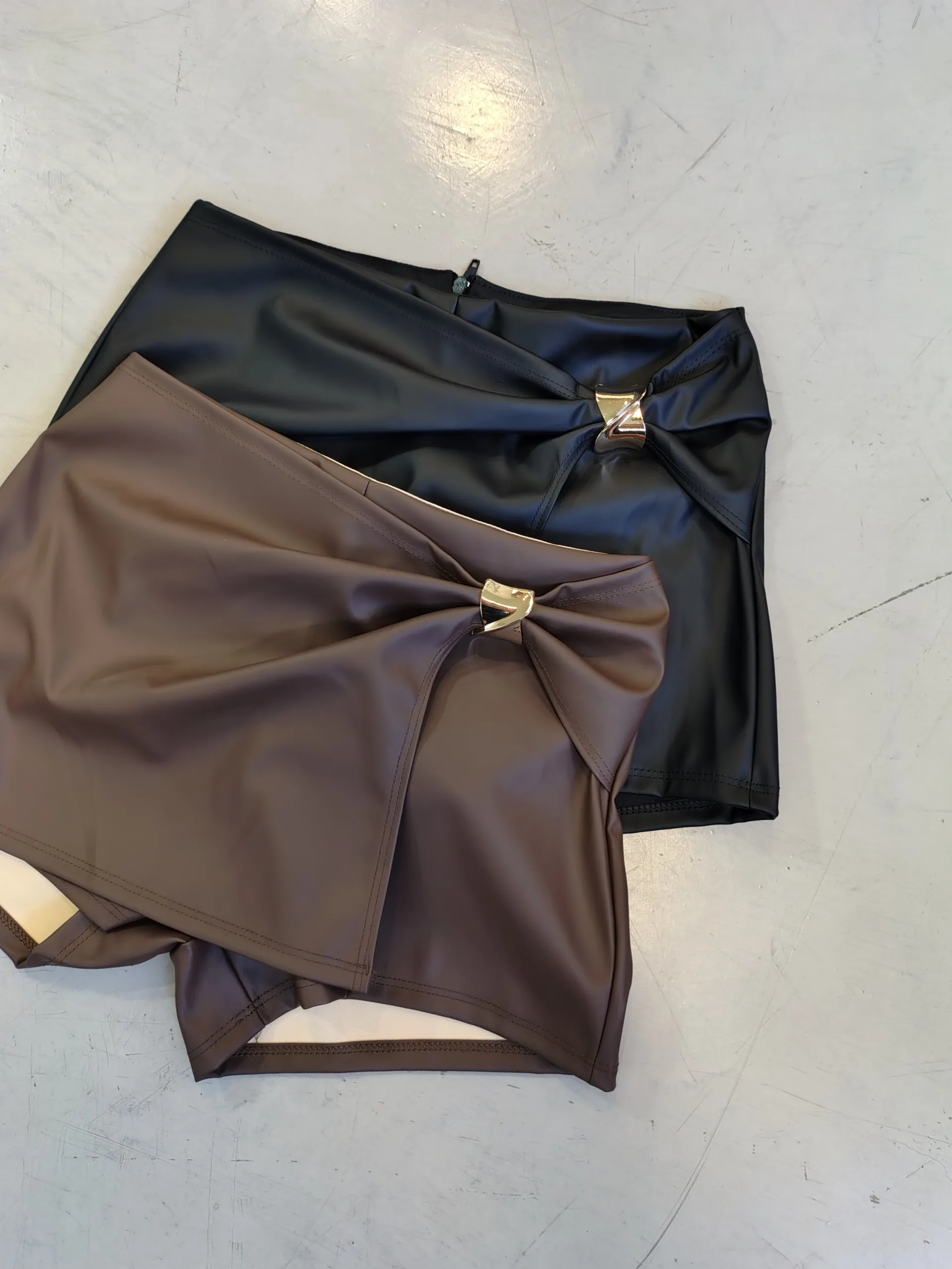 SHORT POLLERA CUERINA HEBILLA RECORTE