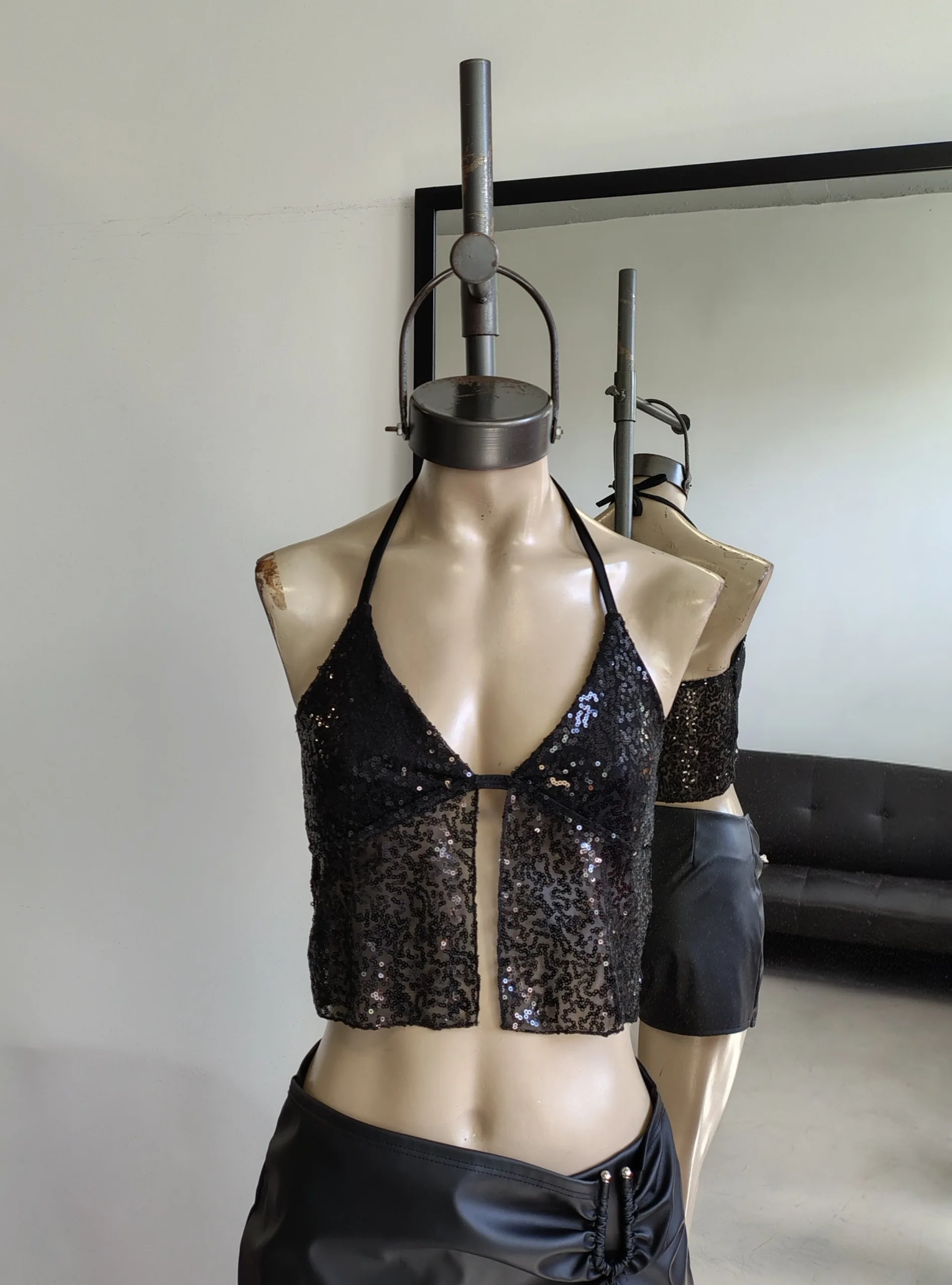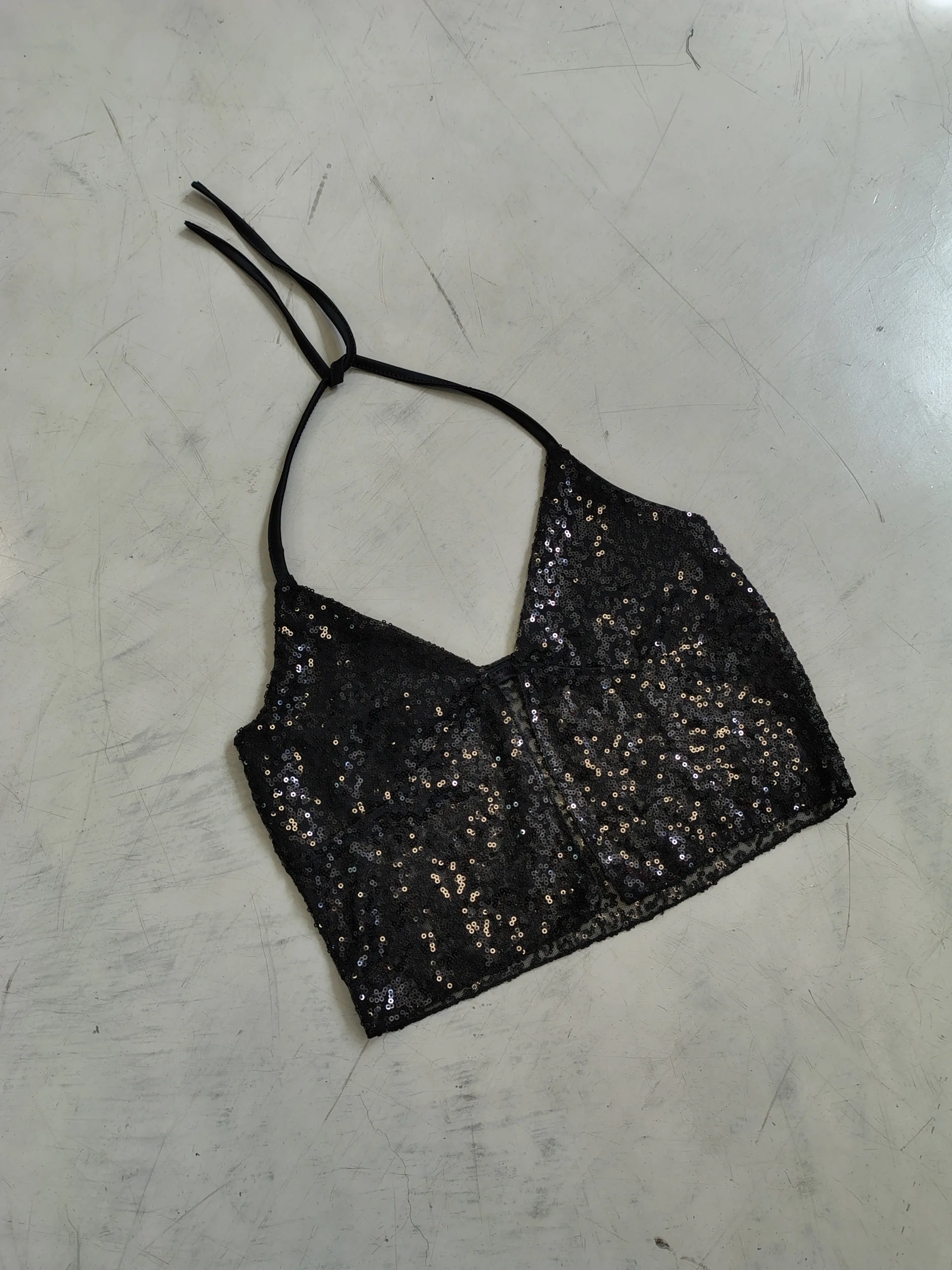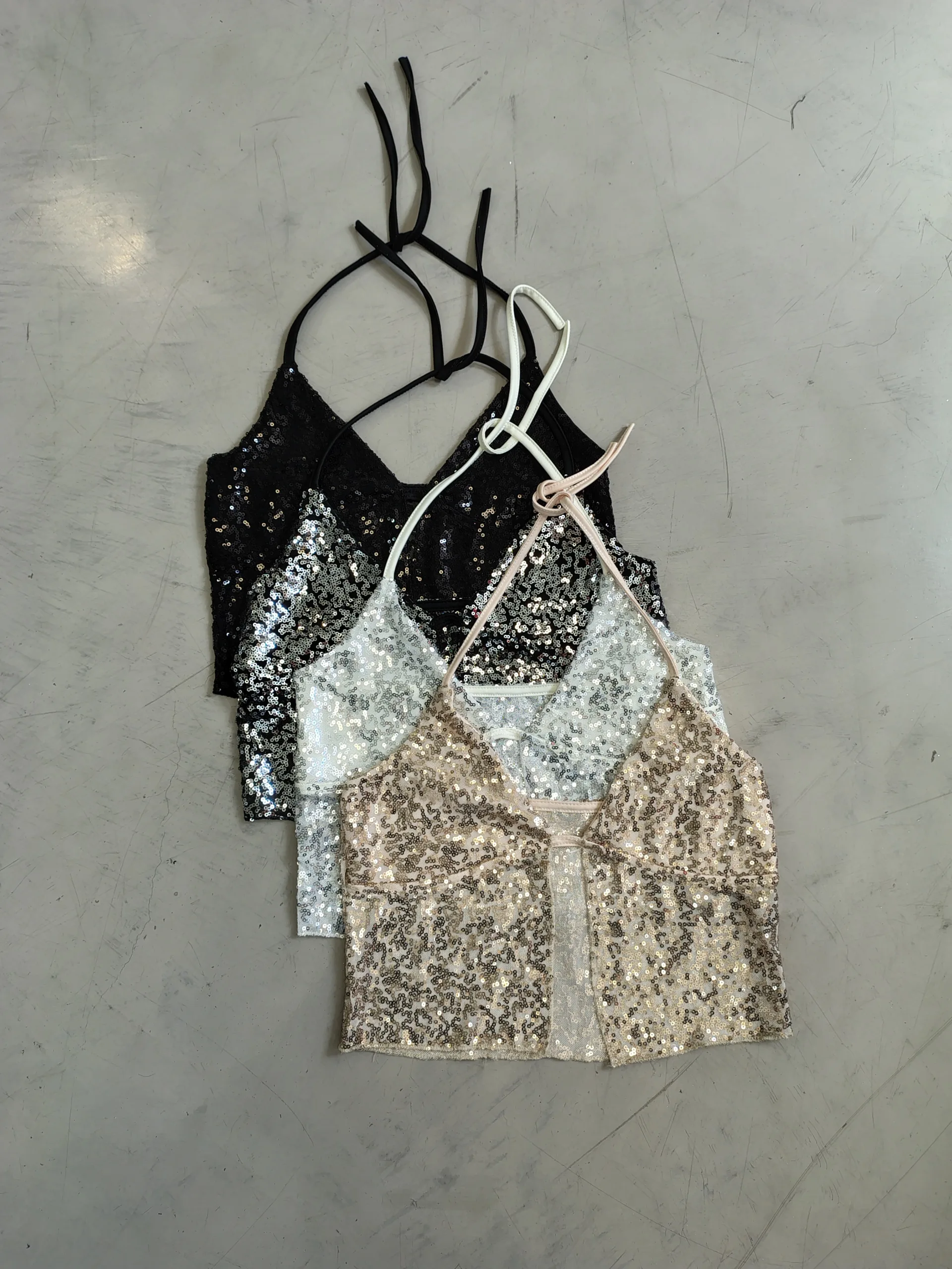 IMPORTADO A45- TOP LENTEJUELA TIRA CUELLO
