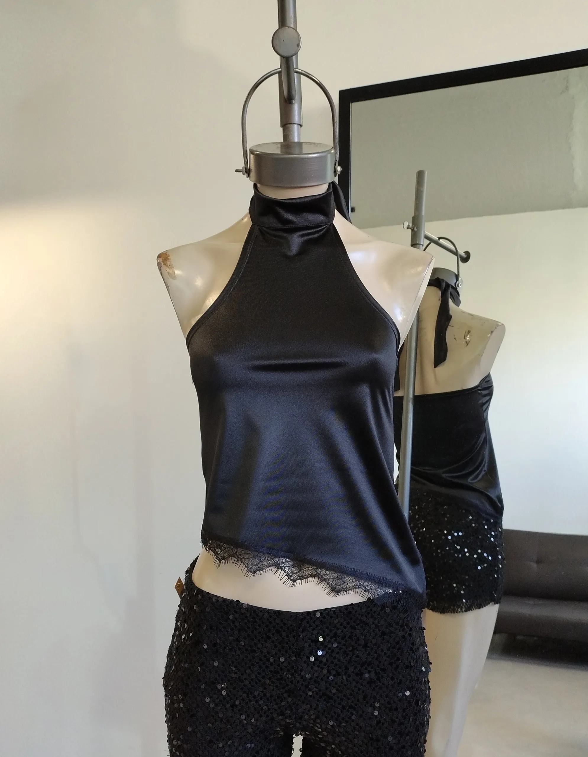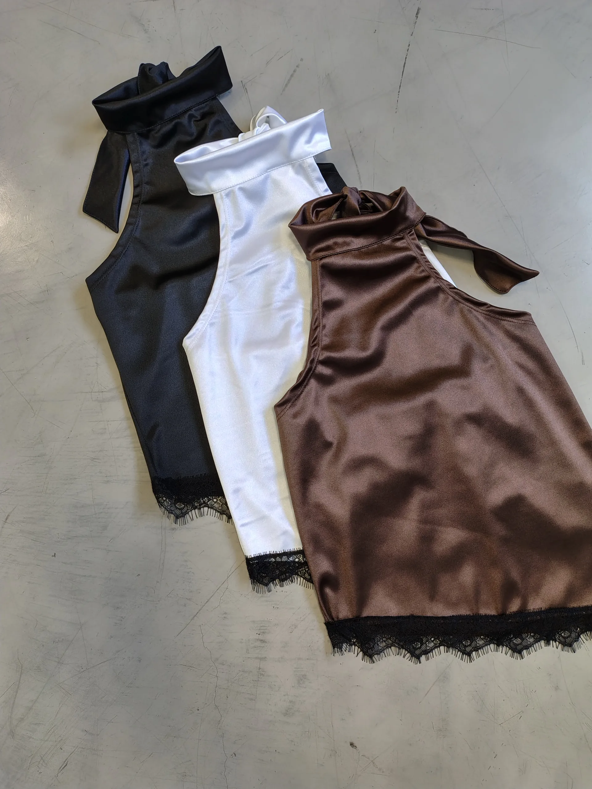 TOP SATEN CUELLO PUNTILLA