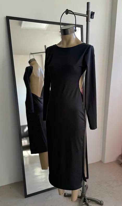 InicioVESTIDOS/MONOSVESTIDO MICROFIBRA LARGO MANGA CON ESPALDA ABIERTA